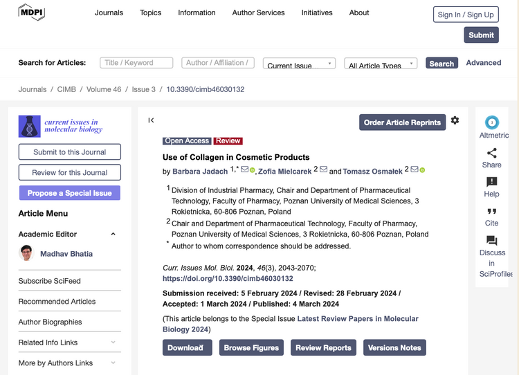 Un studiu publicat în MDPI - Journal of Cosmetic Sciences (2024) a arătat că aplicarea topică a biocolagenului îmbunătățește elasticitatea pielii, crește hidratarea și reduce profunzimea ridurilor.